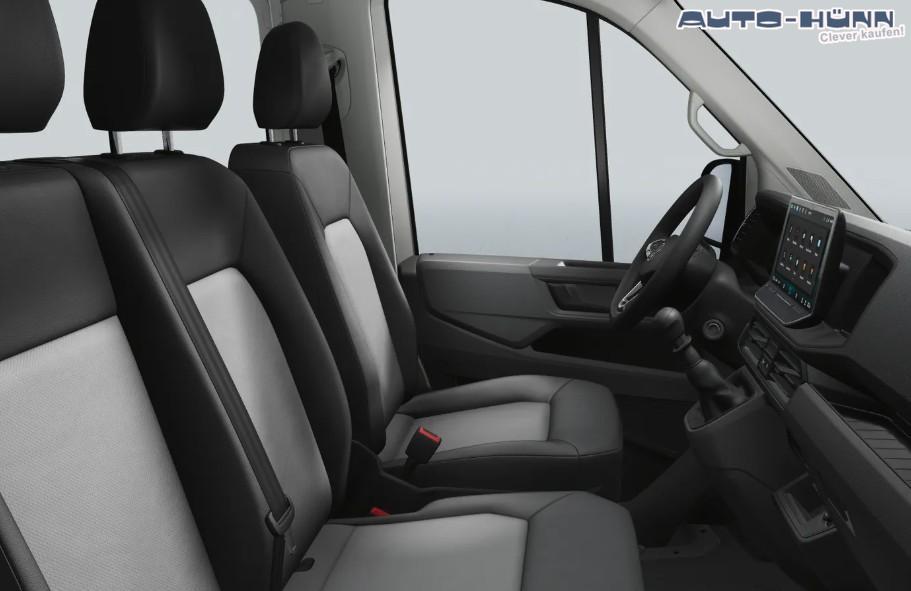 Sitzbezug in Kunstleder Dessin""Mesh"", Assistenzpaket Basic inkl. ""Intelligent Speed Assist"" und Geschwidigkeitsregelanlage, Scheibenwischer-Intervallschaltung mit Licht- und Regensensor, Anhängerkupplung starr (inkl. Gespannstabilisierung), Außenspiegel elektrisch einstell und beheizbar, App-Connect (Navigations über Smartphone möglich, Klimaanlage mit manueller Regelung im Fahrerhaus, Rückfahrkamera ""Rear View"", Scharniere für Heckflügeltüren mit vergrößertem Öffnungswinkel (max. 270 Grad), Beifahrerdoppelsitzbank rechts, mit Ablagefach, Stoßfänger vorne in Grau mit lackierter Blende in Wagenfarbe (inkl. 2 verdeckten Trittstufen), Hochdach, außen in Wagenfarbe lackiert, Werksanschlussgarantie auf 5 Jahre / max. 250.000 Km.