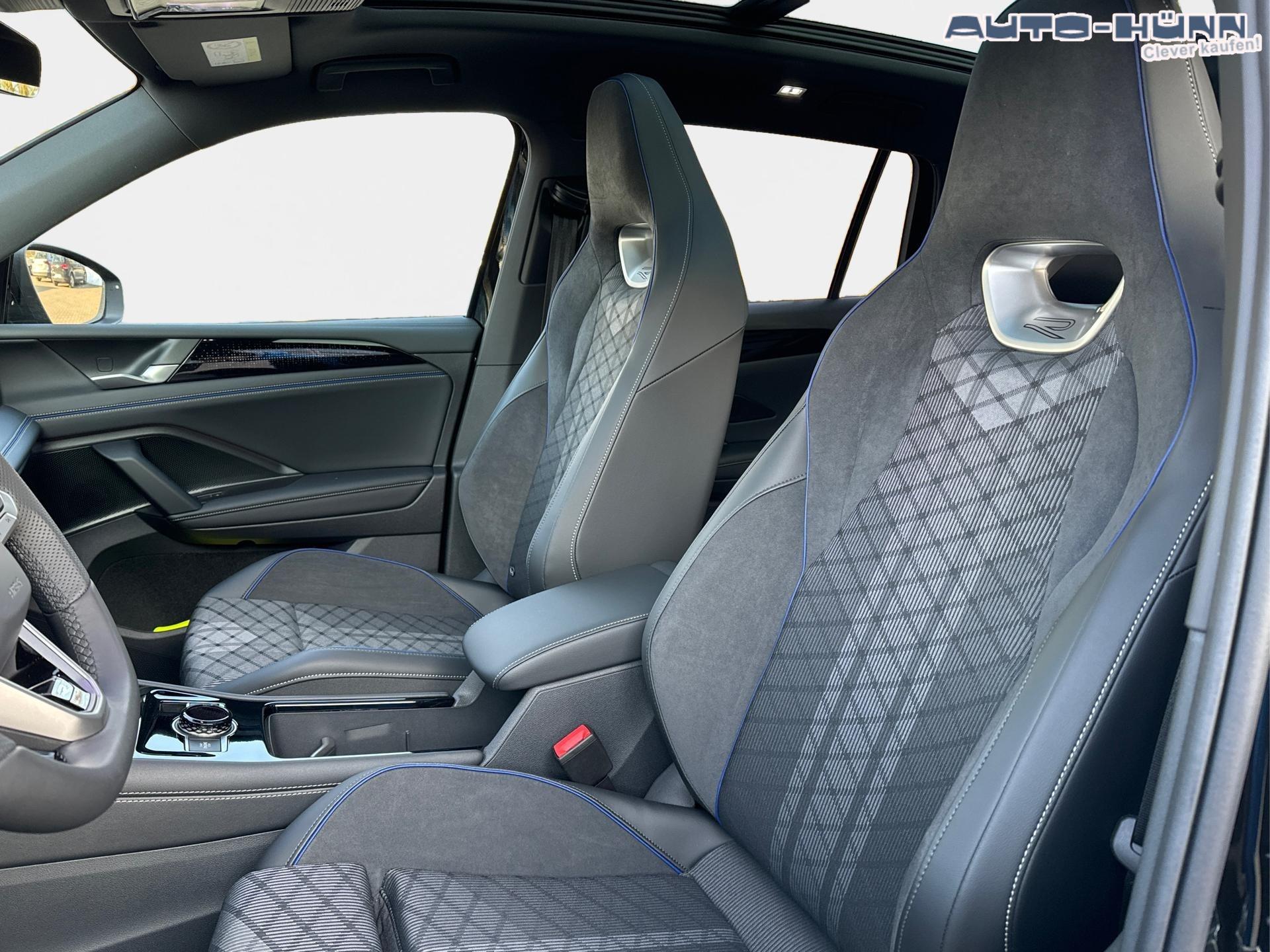 • Innenausstattung ZNR-Line Sportsitze mit integrierter Kopfstütze in Schwarz mit blauer Kontur, Sitzmittelbahnen der Vordersitze und der äußeren Rücksitzplätze in Stoff, Sitzwangen in Art Velours