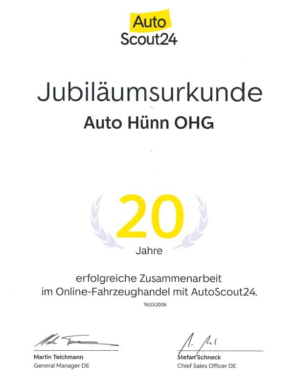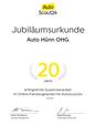 20 Jahre AutoScout Jumbiläumsurkunde